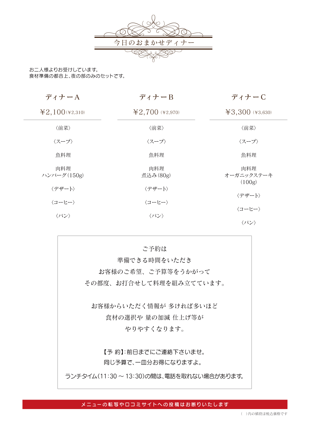 DINNER メニュー